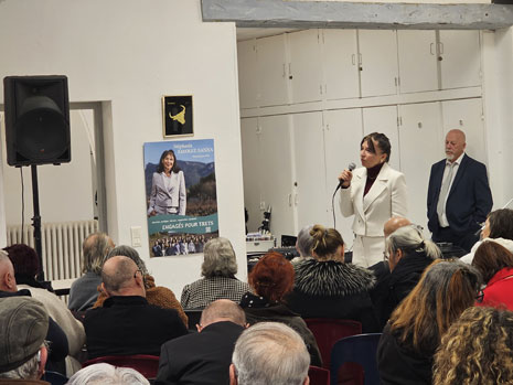 Deuxième meeting de cette campagne des municipales 2026 avec la déclaration officielle de candidature de Stéphanie Fayolle Sanna, qui se présente pour la seconde fois après 2020. Le rendez-vous était donné ce samedi 7 février 2026 à 11h30 au foyer de l’Olympe. Initialement prévu en extérieur, le discours a finalement été rapatrié dans la salle, en raison des averses matinales et d’un temps menaçant.