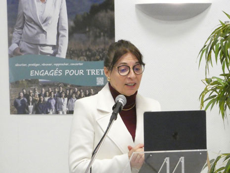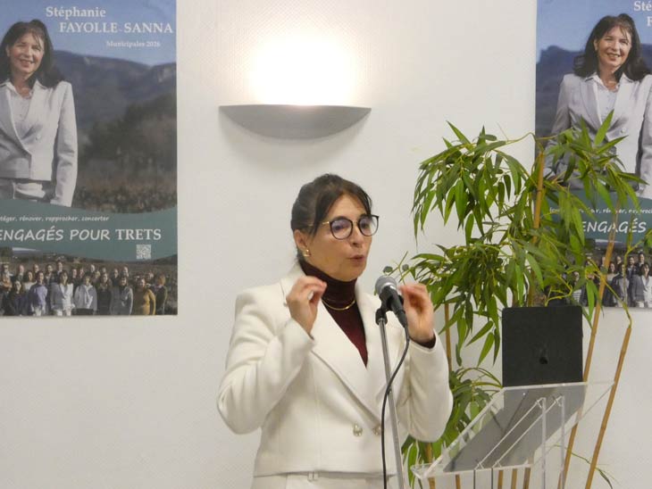 Elle commencera ainsi son allocution en expliquant être là pour proposer aux habitants une autre vision pour TRETS : « Une vision à la fois plus sécuritaire, plus protectrice pour la santé des Tretsois et aussi la santé environnementale, et surtout plus responsable. Alors une vision bien sûr fondée sur des convictions à la fois sincères pour répondre aux enjeux actuels et contribuer à un avenir meilleur. Alors face à une équipe qui s’acharne à construire et vendre le foncier communal, sans réfléchir en amont, ni aux conséquences sur la circulation, sur les écoles, sur le manque de stationnement, sur le risque d’inondation qui n’est pas des moindres et sur notre cadre de vie, je vous propose une équipe rassemblée, fiable et qualifiée, à la fois pour remettre de la sécurité à TRETS, défendre l’intérêt général et améliorer le bien-vivre de tous les Tretsois. Alors ensemble, nous allons agir, rectifier et changer la trajectoire actuelle. »