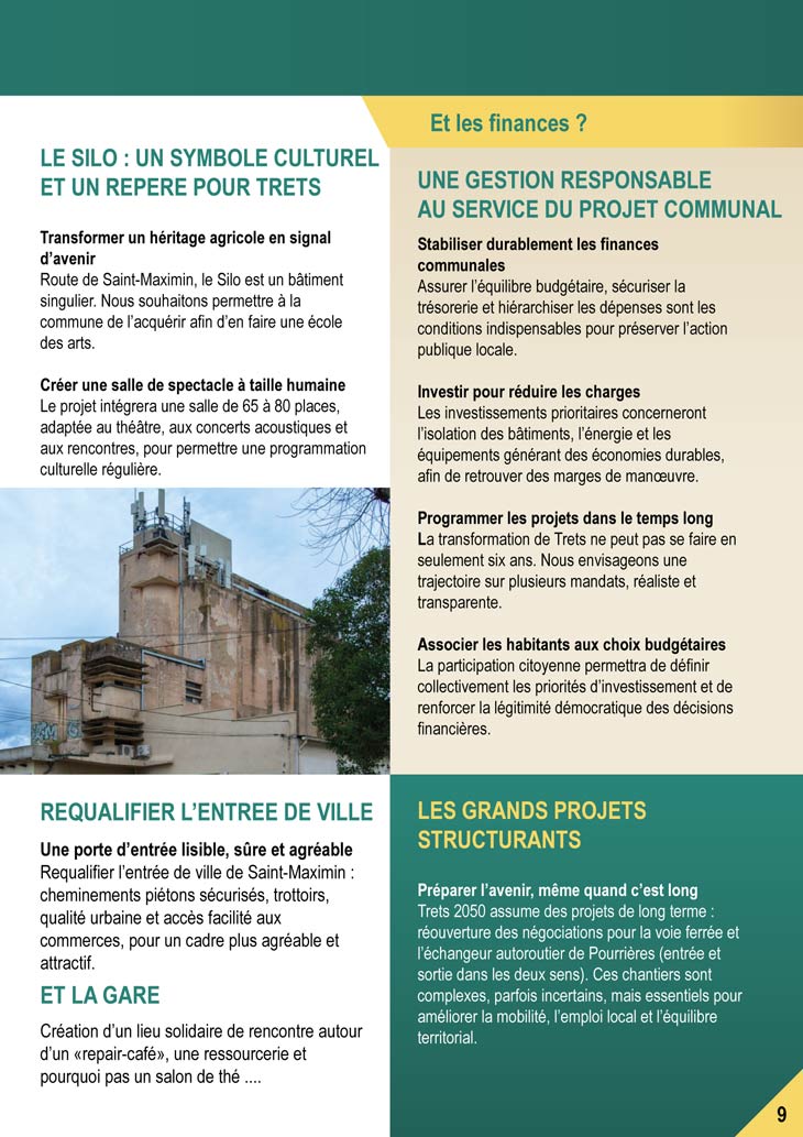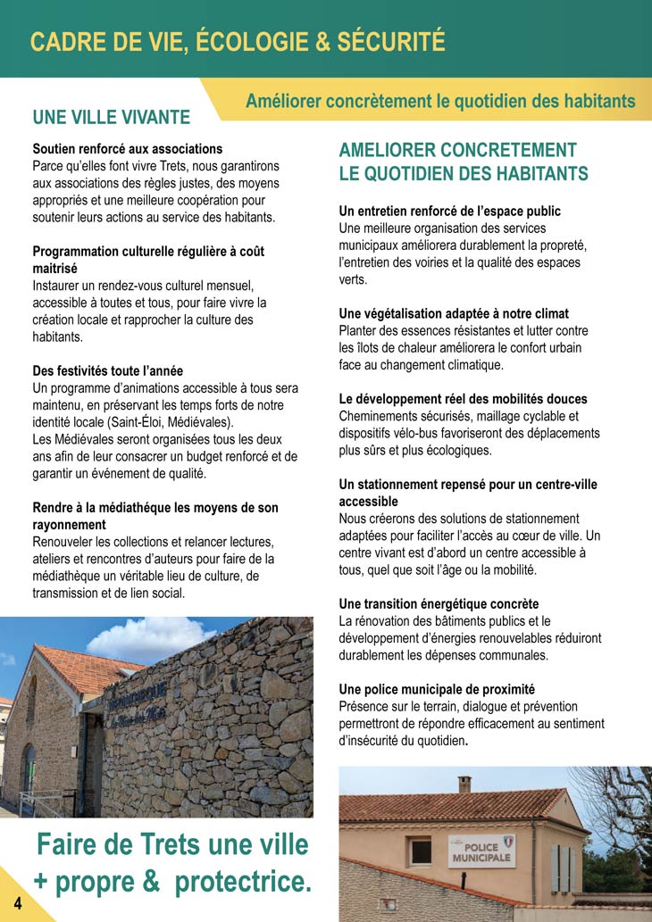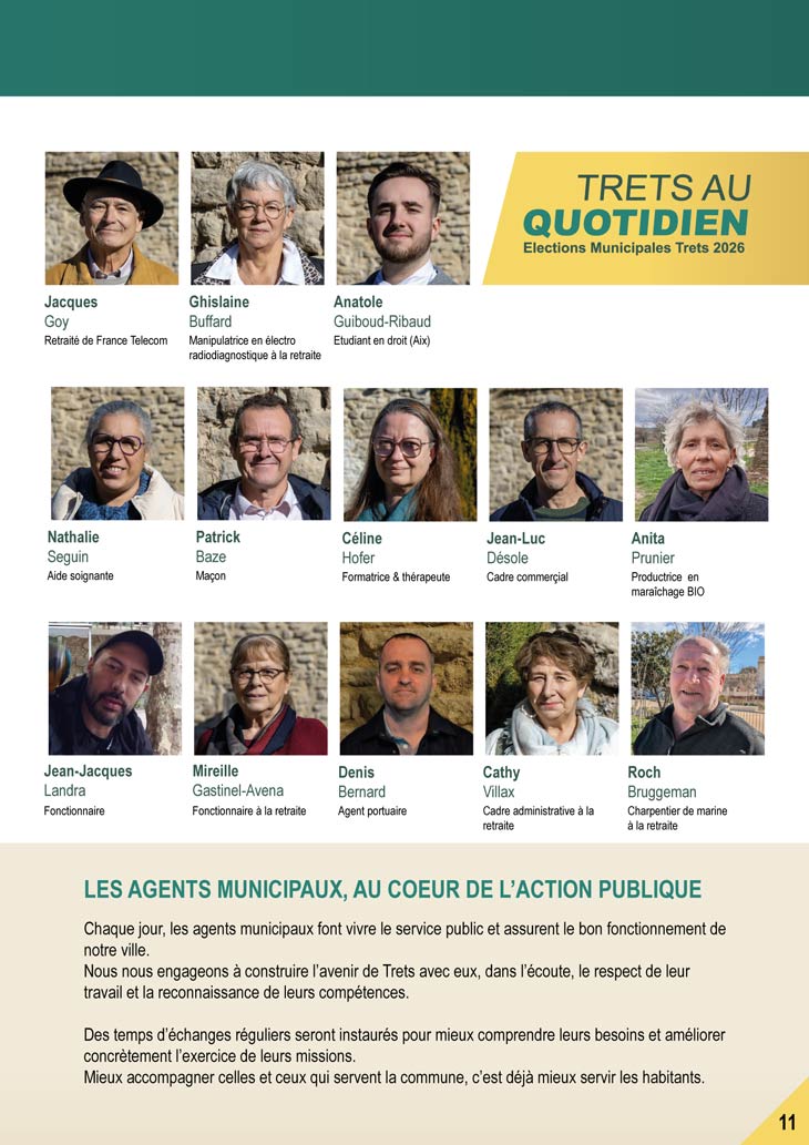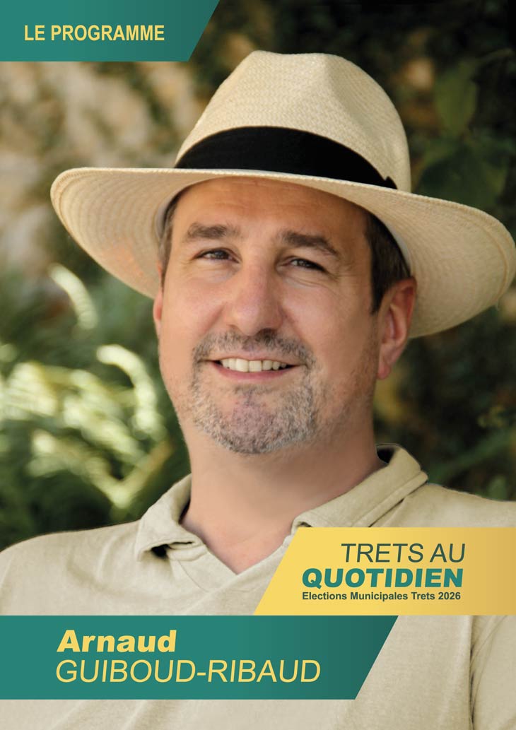 A 9 Jours du premier tour des MUNICIPALES 2026, le site vous dévoile désormais le dernier des trois programmes des MUNICIPALES 2026, un document toujours très attendu puisqu’il permet de faire notre choix dans les urnes ! On termine avec celui de la liste TRETS AU QUOTIDIEN d’Arnaud Guiboud Ribaud, qui se présente pour la 1ère fois. Elle est classée en préfecture Divers GAUCHE.