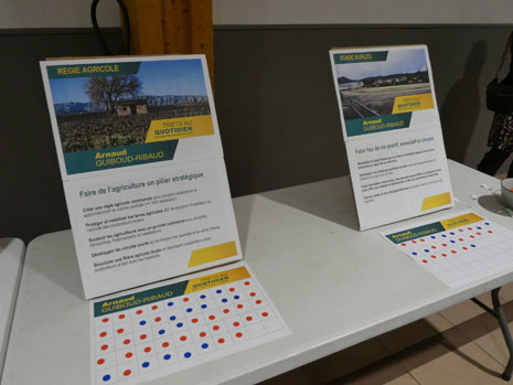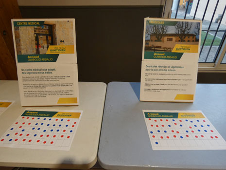 Un apéritif sera offert, et le candidat ira répondre aux questions des habitants en tête-à -tête avant de donner le verdict du sondage des gommettes :