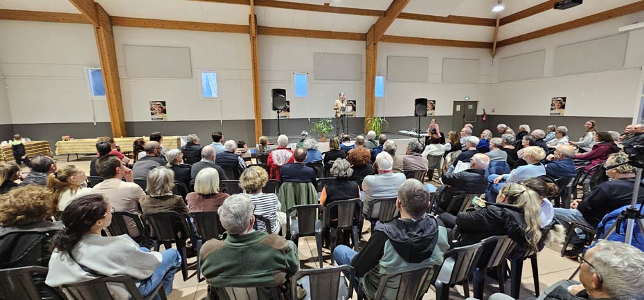 Seconde soirée de meeting des MUNICIPALES 2026 pour ce premier tour ce jeudi 12 mars 2026 et après Stephanie Fayolle Sanna la veille, place à une autre liste dite plurielle, celle d’Arnaud Guiboud Ribaud, classée liste DIVERS GAUCHE par la préfecture. Le rendez-vous était donné plus tôt que pour ses concurrents, à la salle des Colombes, à 18 h, un horaire visiblement assez précoce puisque des personnes sont arrivées progressivement jusqu’à la fin. C’était son second discours de sa jeune carrière politique, après celui du 13 février dernier qui n’avait réuni que 40 personnes à peine !