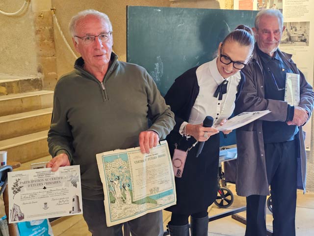 samedi 27 septembre 2025. Dans le cadre du mois spécial dédié à l'école, organisé par les services culturels et la médiathèque, Guy Van Oost, ex-président des Amis du village, avait proposé en début d'année à la mairie une grande nouveauté à Trets : repasser le fameux certificat d’études d’autrefois, mais "pour de faux". Un projet immédiatement validé par les élus et services, et qui a enchanté les participants ce samedi.