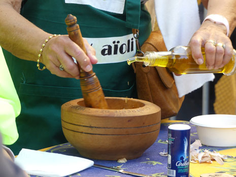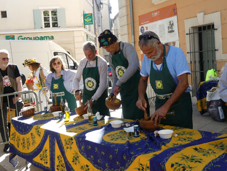 La matinée fut elle comme de coutume très animée avec de la musique, des danses provençales, et bien évidemment le concours d’aïoli, moment fort du week-end qui a réuni de nombreux spectateurs. Le concours a ainsi réuni 10 participants cette année dont 4 enfants la fidèle Louise Bergeron, mais aussi Kadija Picca Hamidi, Nahéolivier Nerriere et Lylou Avena. Chez les adultes, la victoire est revenue à Laurence Geronimi, suivie de Hubert Hurtado, membre d'une confrérie venue du Beaujeaulai et en 3e Chantal Duc elle aussi membre d'une confrérie invitée.