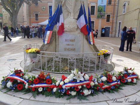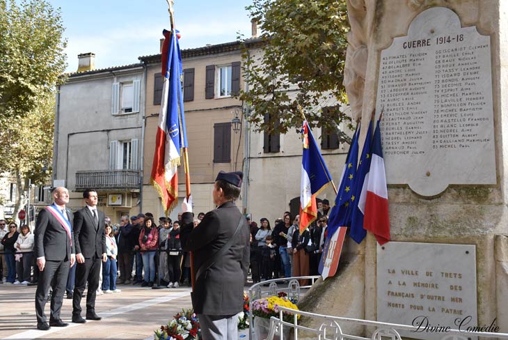 107 ans après, nous nous retrouvons en ce lieu pour honorer tous ces valeureux soldats qui sont tombés au champ d’honneur et tous ceux qui ont souffert dans leur chair ainsi que de toutes ces familles brisées. En 1918, le village de TRETS comptait 2700 habitants. 85 de ces enfants, un frère, un mari, un père, un cousin, un ami ne sont pas revenus. Tous morts avec honneur sur ces champs d’horreurs « Batailles de la Somme, de la Marne, de Verdun, de l’Aisne avec le néanmoins célèbre « chemin des dames » et tants d’autres. Leurs noms sont gravés à jamais sur ce monument qui orne cette place de la République. Nous avons le devoir de les honorer, de ne pas les oublier, nous ne les oublierons jamais.