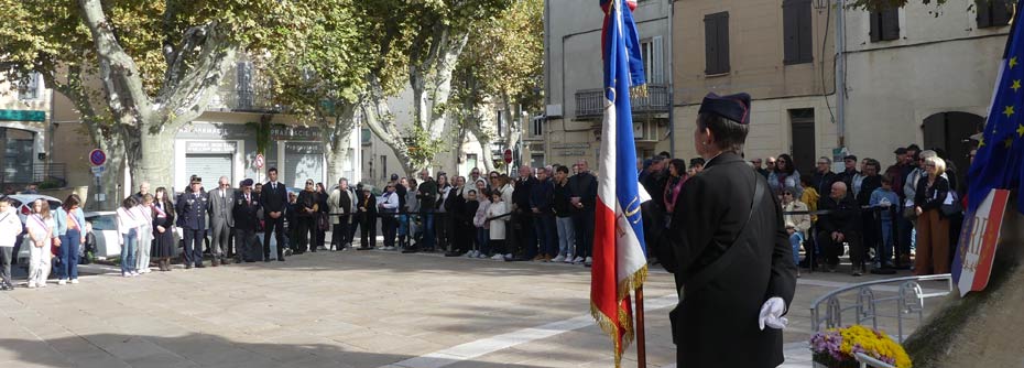 Après les discours du maire P CHAUVIN, du président des anciens combattants P Perichon, Aminata Thioune Élue au Parlement Régional de la Jeunesse et Jules Chiavassa Élu au Conseil Métropolitain des Jeunes, les élus avec les jeunes du conseil municipal des jeunes ont déposé des gerbes puis la chorale de la chanson française a interprété La Marseillaise, puis La Madelon et un moment de recueillement en hommage aux disparus sera effectué. Un apéritif sera enfin offert à la population.