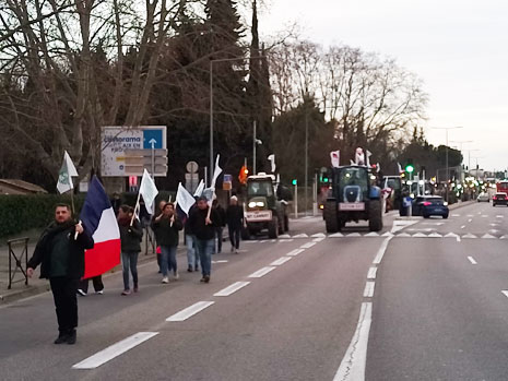 La mobilisation agricole a une nouvelle fois envahie les rues d’Aix-en-Provence ce vendredi 16 janvier 2026. Dès l’aube, des agriculteurs venus de tout le département ont convergé vers la capitale provençale. Parmi eux, les agriculteurs et viticulteurs tretsois, partis à 6h30 de Trets depuis le restaurant Le Millimètre, sur la N7. Le convoi, composé de neuf tracteurs et accompagné d’un cheval de trait, a ensuite rejoint Aix-en-Provence où il a défilé toute la matinée, avec plusieurs étapes dans le centre-ville. Des Tretsois fortement engagés, présents à l’ensemble des mobilisations départementales depuis le début du conflit agricole il y a désormais un an.