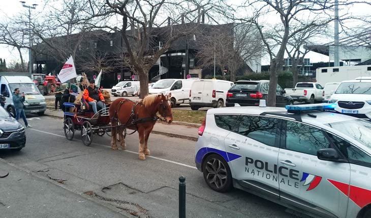 17/01 : Aux alentours Reportage Vidéo Aix : Les agriculteurs de Trets avec leur cheval et de tout le département ont paralysé Aix pour défendre leur métier !