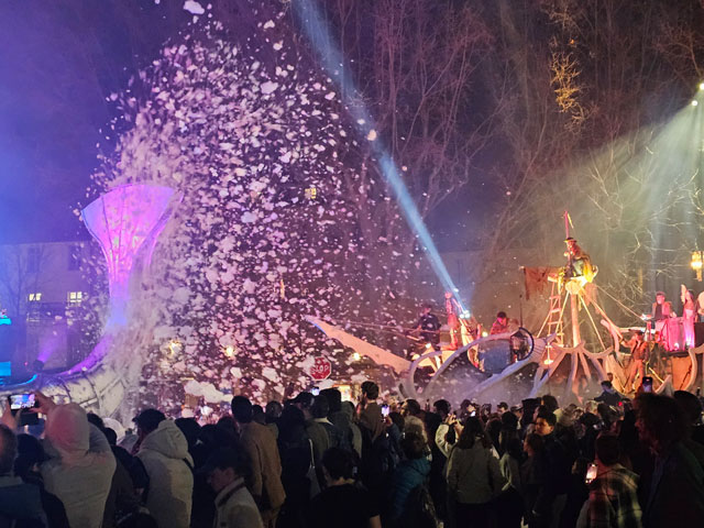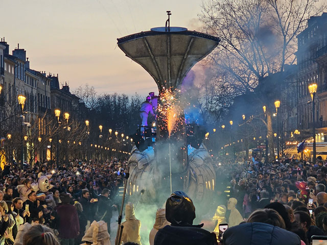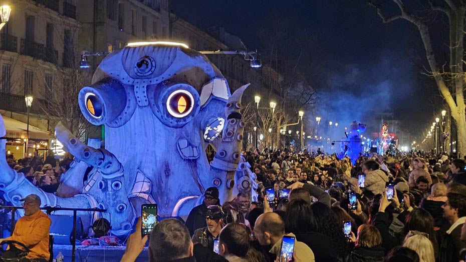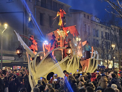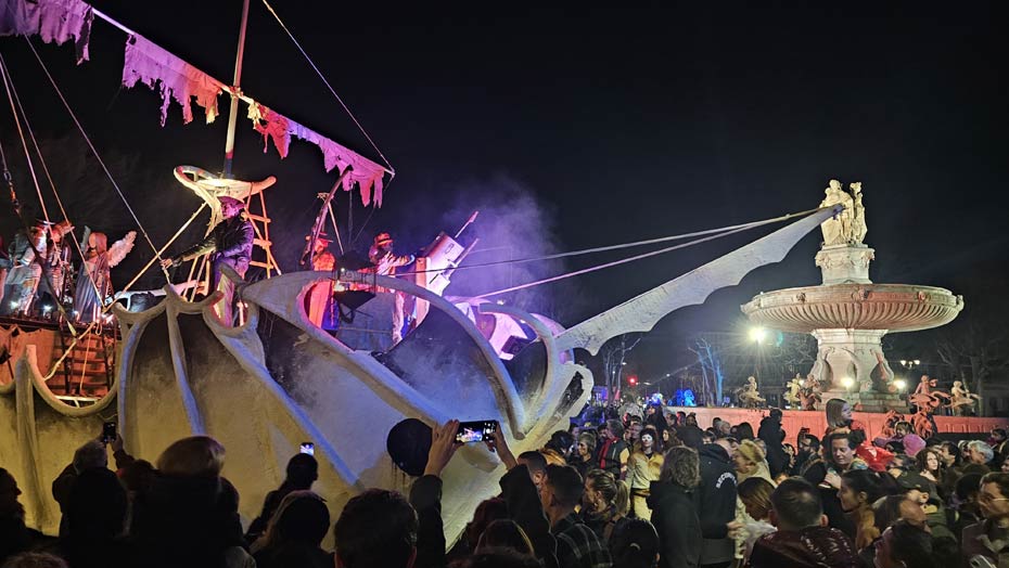 01/03 : Reportage Festivités Vidéo Aux alentours : À la poursuite de Moby Dick : La mer envahit le Cours Mirabeau d'AIX, avec une baleine poursuivie par un navire géant dans une marée humaine ! REPORTAGE