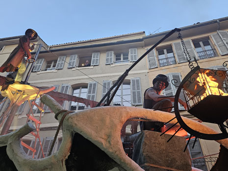 Un beau défilé & sympa jusqu'à 19h15 environ avant que le public ne se masse autour de la Rotonde, ne sachant où se mettre exactement, assistant alors à un spectacle de la compagnie, assez brouillon et longuet il faut dire, dont on avait du mal à comprendre le sens, d'autant que la sono était très mauvaise , inexistante à certains endroits ou alors avec des échos. Autour de la statue du Roi René, les jeunes danseurs de la Compagnie Grenade y ont livré une chorégraphie énergique, puis la compagnie CPPP y a présenté une sorte d'affrontement entre la baleine et l'équipage du bateau baleinier du Capitaine Achab. On y verra alors de nombreuses acrobaties circassiennes au sommet de la baleine , de la pyrotechnie sur sa queue, puis des danses, numéros aériens sur un mat et bien d'autres numéros encore. .jpg)