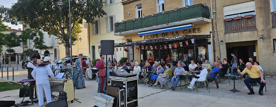 12/09/2025La terrasse du café de la Gare s'est transformée pour la 1ère fois en théâtre musical avec le spectacle GARÇON, UN DEMI !