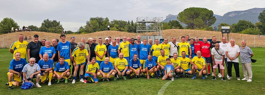 Rebelote ce mercredi soir, où la même ambiance de retrouvailles entre tous ces anciens s'est reproduite, tous ravis de se retrouver, dans un bel esprit déconneur, et de taquiner de nouveau le ballon comme dans leur jeunesse, lointaine pour certains. 49 y ont ainsi participé, âgés de 18 à 70 ans, anciens joueurs, entraîneurs ou présidents de l'UST durant les années de Daniel Michel. Sans entraînements et même si la vitesse de jeu n'était pas aussi rapide que les matchs des jeunes de la N3 le samedi sur cette même pelouse de la Gardi, nos anciens se sont beaucoup amusés, se sont charriés aussi, fait un peu de cinéma et ont tout de même réussi de belles actions et beaux buts dans ce match opposant l'équipe "Génération PH" et celle "Génération Juniors", avec des maillots bleu et jaune, les couleurs du club depuis 113 ans.