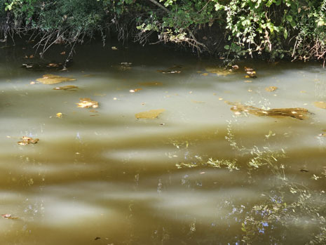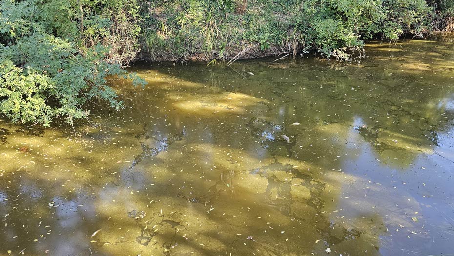 Cet énième épisode de pollution depuis février 2024 est en effet bien plus important que les précédents mais aussi différent. Si la pollution n'est pas présente en surface partout avec des algues vertes ou marron, différentes des autres fois, surtout visibles aux abords du pont en pierre et du barrage, les conséquences, elles, sont générales puisqu’entre plusieurs algues flottent aussi en surface.