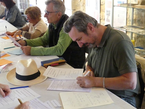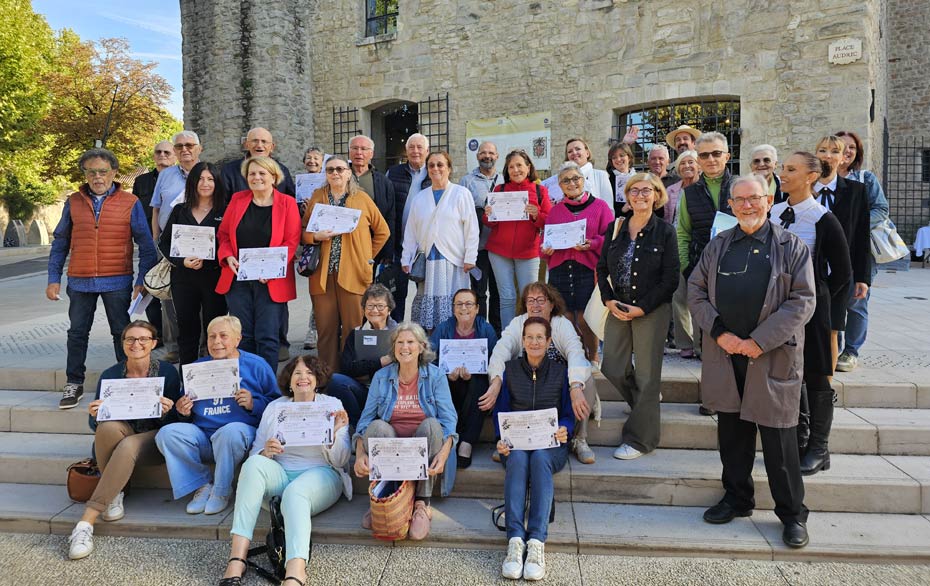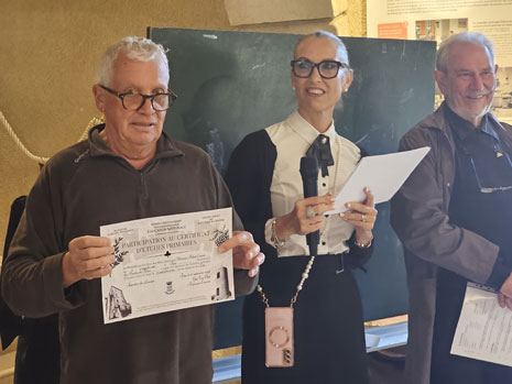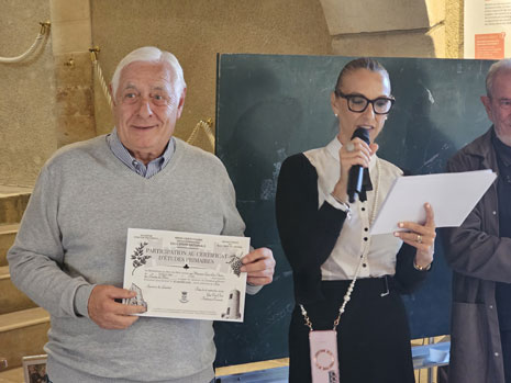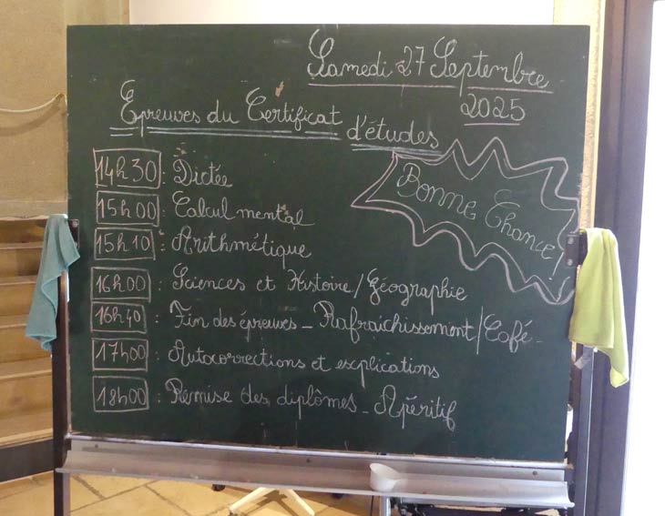 samedi 27 septembre 2025. Dans le cadre du mois spécial dédié à l'école, organisé par les services culturels et la médiathèque, Guy Van Oost, ex-président des Amis du village, avait proposé en début d'année à la mairie une grande nouveauté à Trets : repasser le fameux certificat d’études d’autrefois, mais "pour de faux". Un projet immédiatement validé par les élus et services, et qui a enchanté les participants ce samedi.