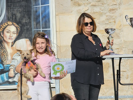Enfin, la journée s’est clôturée sur une note amusante avec le verdict du concours de selfie avec son animal de compagnie, réunissant une trentaine de participants qui ont envoyé leurs photos durant l'été avec leurs chiens, chats, cochons, serpent ou même tortues et plusieurs ont même défilé dans l'après midi dans la cour. Une remise de récompenses ayant ensuite lieu. Mariannick Tomas a remporté le 1er prix du concours ! Lilian lui a gagné prix pour la catégorie attendrissant.