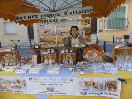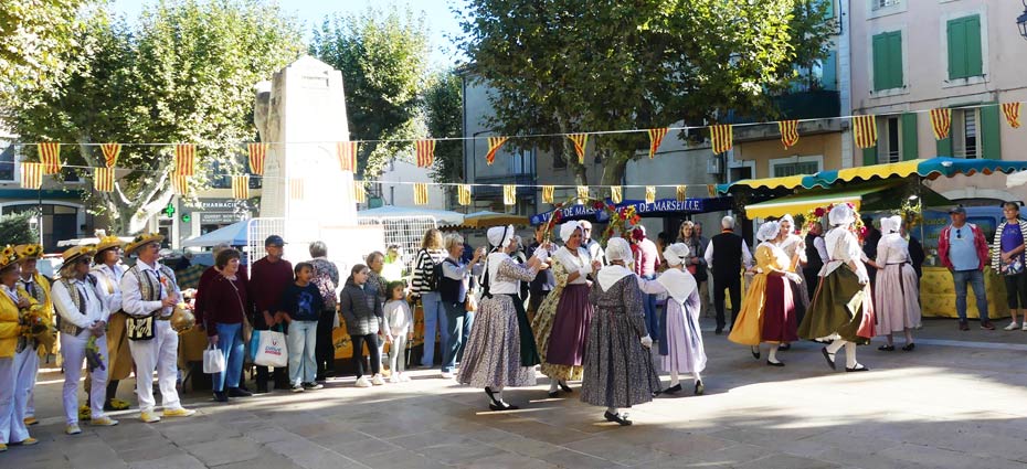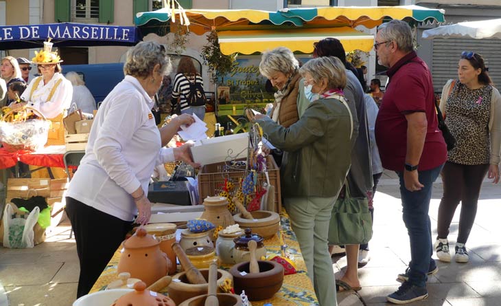 samedi 11 octobre, la 12ᵉ édition du marché des producteurs régionaux a ainsi réuni une quinzaine d'exposants sur la place de la mairie. Tout au long de la journée, un public nombreux est ainsi venu flâner entre les étals colorés, à la découverte de produits authentiques : confitures maison, miel gâteaux, gibassiés et navettes de Trets signées Pierre Piantino, miel, sirops de lavandes, nougats, patisseries provençales, olives, tapenades, ails de Trets, ou encore safran de Trets. Plusieurs confréries étaient également présentes pour présenter leurs spécialités locales comme : L'ail de Piolenc, la Confrérie des Chevaliers du Taste-Fromage de Langres (52), confrérie des Compagnons du Beaujolais, Confrérie du Murçon Matheysin, Confrérie Figue de Solliès. Un marché qui hélas a plié bagages bien trop tot, vers 15h30 dès le repas terminé, alors que la fin était annoncée pour 17h. Pendant ce temps, les plus jeunes profitaient d’un espace de jeux en bois géants et d’un château gonflable, très fréquenté tout au long de la journée.