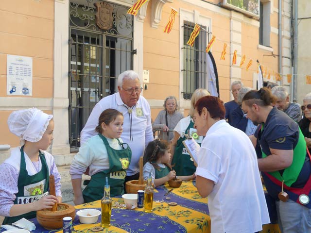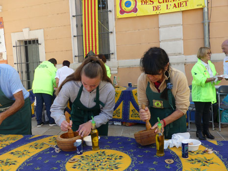 La matinée fut elle comme de coutume très animée avec de la musique, des danses provençales, et bien évidemment le concours d’aïoli, moment fort du week-end qui a réuni de nombreux spectateurs. Le concours a ainsi réuni 10 participants cette année dont 4 enfants la fidèle Louise Bergeron, mais aussi Kadija Picca Hamidi, Nahéolivier Nerriere et Lylou Avena. Chez les adultes, la victoire est revenue à Laurence Geronimi, suivie de Hubert Hurtado, membre d'une confrérie venue du Beaujeaulai et en 3e Chantal Duc elle aussi membre d'une confrérie invitée.