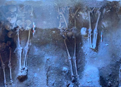 Dans le cloître, les trois sondages ont révélé des ossements humains : hommes (peut-être des moines dominicains), d’enfants et d’une femme et de tout-petits. Les archéologues ont également découvert, des squelettes dans des coffrages en pierre.