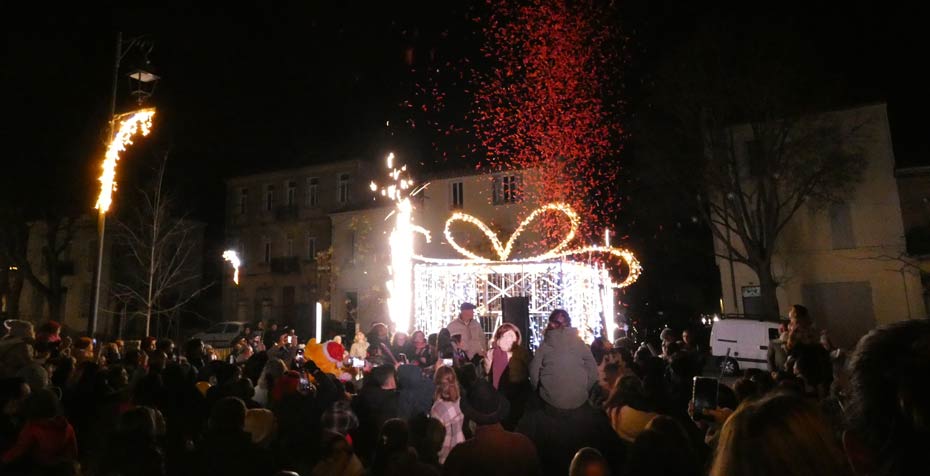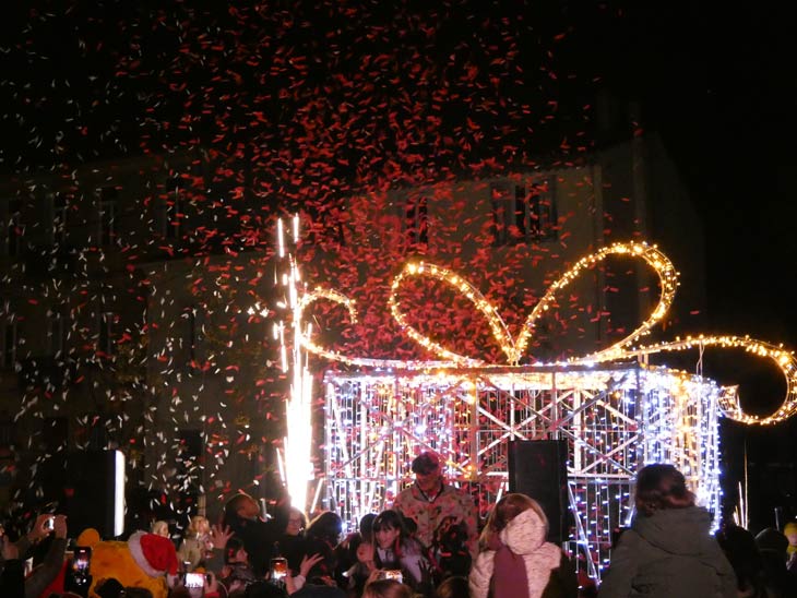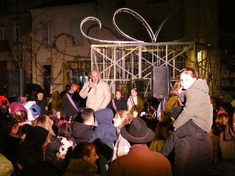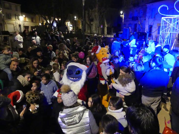 Après une longue attente, à 18h40 deux mascottes Winny L'ourson et Stitch sont ensuite venues rencontrer les enfants pour leur plus grand plaisir et le maire allumera pour la dernière fois de son mandat les illuminations à 18h50, entouré des élus du CMJ. Le service festivités avait fait les choses en grand cette année avec cotillons rouge et pyrotechnie lors du décompte et l'allumage....