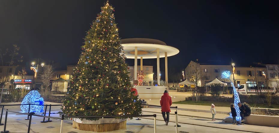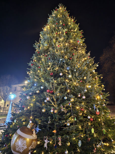 Ce vendredi 5 décembre 2025 comme tous les premiers vendredis de décembre, la municipalité a lancé ses festivités de NOEL avec la belle tradition instaurée en décembre 2020 : le sapin de NOEL des petits tretsois. Un sapin qui a encore déménagé cette année puisqu'il s'est dressé sur le parvis de la gare cette année, avec un sapin géant semi naturel. Celui ci est en effet d'un nouveau genre, puisqu'il n'y en a pas un seul grand de deux trois mètres comme les années passées mais des dizaines de petits installés sur une structure métallique formant un immense sapin de 9 mètres comme à Gardanne. Au final le sapin est magnifique, très bien fourni et sans trou et la ville l'a de plus très bien illuminé cette année, ce qui n'avait pas été le cas les années passées, et y a rajouté des petites boules. Un bien beau sapin donc mais qui aurait mérité quelques décos lumineuses ou de très grosses boules vu sa grandeur, comme ceux de Gardanne, Aix etc.