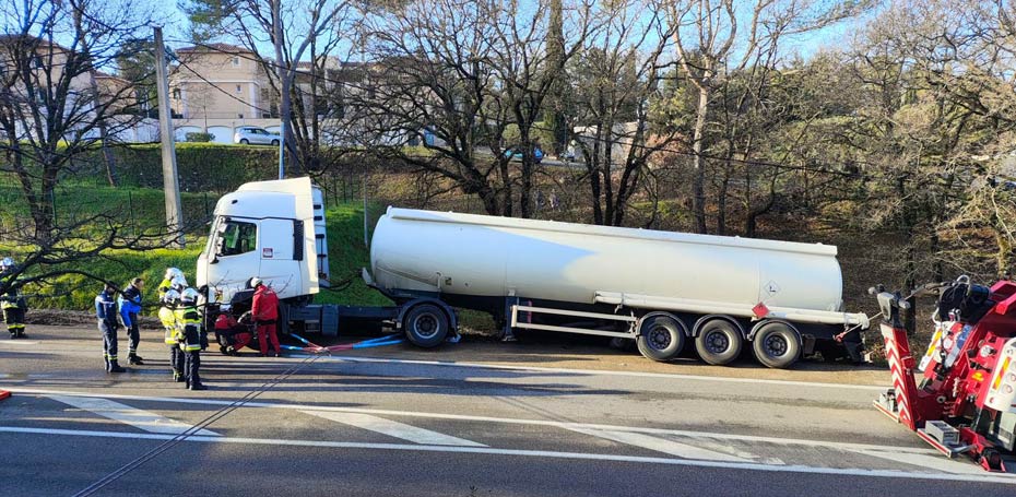 29/01 : Faits divers presse : Une sortie de route impressionnante d'un camion citerne a bloqué la D96 à Fuveau ce jeudi